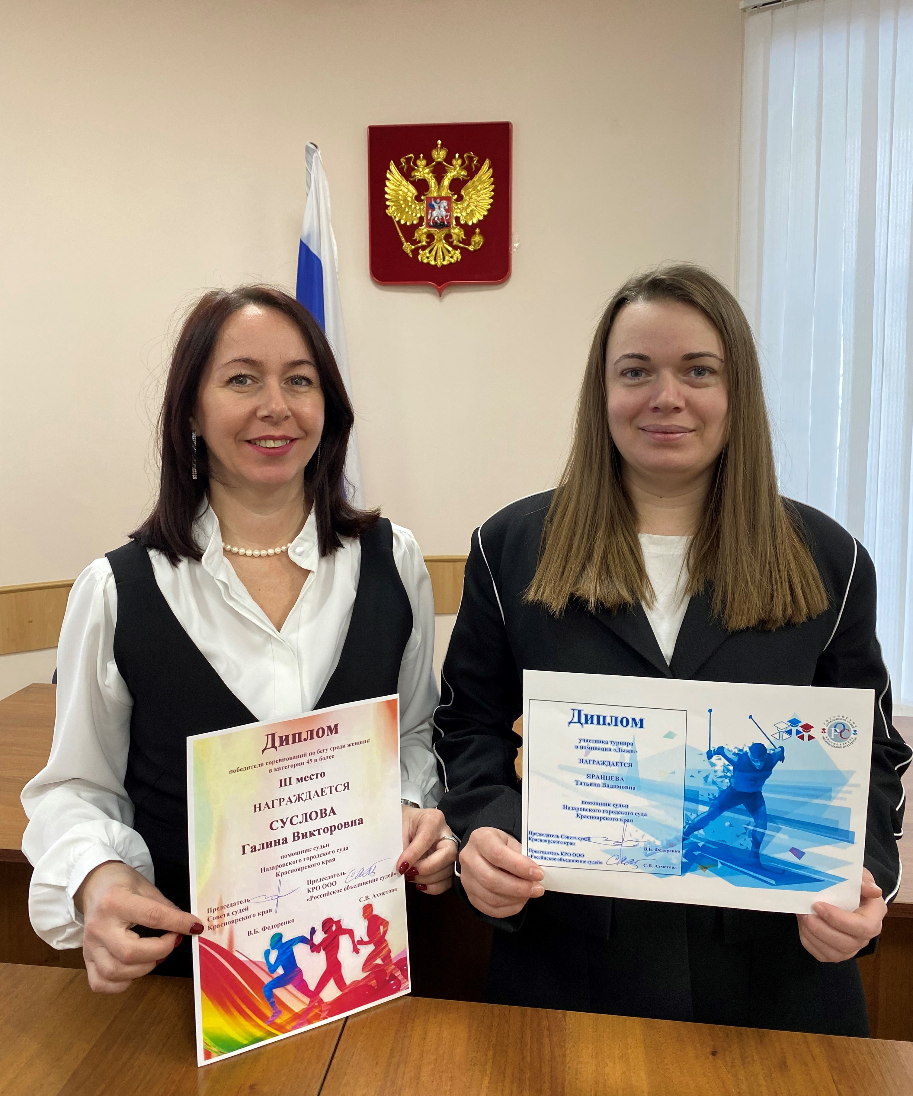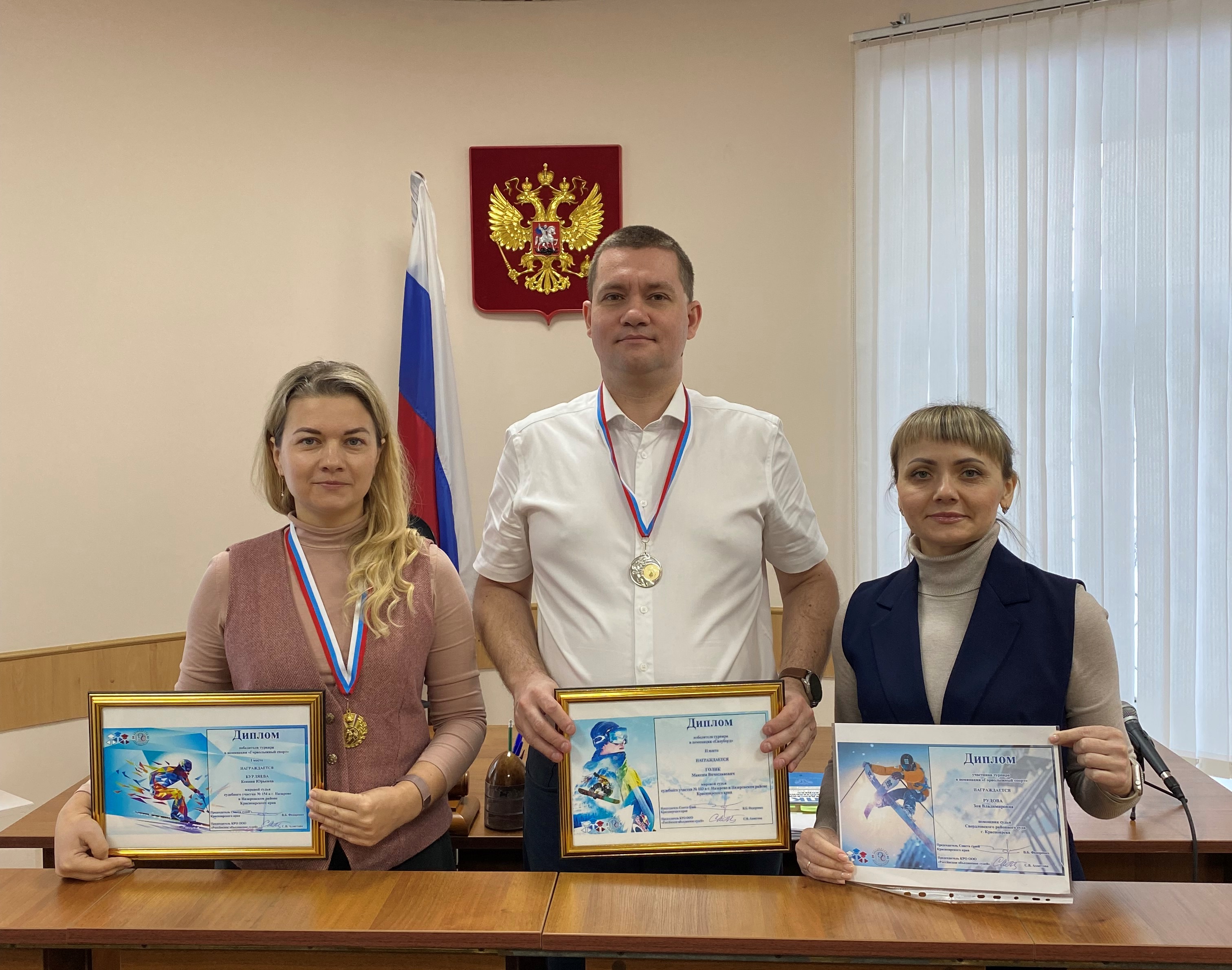 Подведены итоги работы Назаровского городского суда за 2024 год 13.01.2025 в Назаровском городском суде была проведена общая планерка с участием судей и работников аппарата Назаровского городского суда, мировых судей судебных участков №№ 102, 103, 104, 154 в г. Назарово и Назаровском районе Красноярского края по итогам работы за 2024 год. В ходе планерки обсуждались вопросы общей нагрузки суда и нагрузка каждого судьи по поступившим и рассмотренным делам, количественные и качественные показатели работы суда за 2024 год, в том числе, в сравнении с предыдущими периодами работы, а также общие вопросы организации работы Назаровского городского суда. По окончании официальной части планерки председателем Назаровского городского суда Хобовец Ю.А. были вручены дипломы победителей и участников спортивных мероприятий, проведенных в 2024 году среди работников судебной системы: - мировому судье судебного участка № 154 в г. Назарово и Назаровском районе Красноярского края Бурляевой К.Ю. – 1 место среди женщин в номинации «Горнолыжный спорт», - мировому судье судебного участка № 103 в г. Назарово и Назаровском районе Красноярского края Голику М.В. – 2 место среди мужчин в номинации «Сноуборд», - помощнику судьи Сусловой Г.В. - 3 место по бегу среди женщин в группе 45 лет и более, а также мировому судье судебного участка № 104 в г. Назарово и Назаровском районе Красноярского края Рудовой З.В. за участие в турнире «Горнолыжный спорт» и помощнику судьи Назаровского городского суда и Яранцевой Т.В. за участие в турнире в номинации «Лыжи». Председатель суда Хобовец Ю.А. и весь коллектив Назаровского городского суда от всей души поздравили призеров и участников соревнований с заслуженными наградами и высокими результатами, а также пожелали дальнейших спортивных успехов. .![]() |